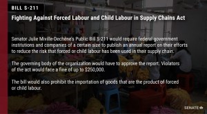 “Slavery has not been relegated to history, it is still a scourge in the 21st century and Canadians unwittingly buy products made with slave labour. This bill will ensure that corporations examine their supply chains and certify that slaves had no part in the making of their products.”